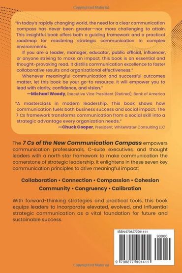 The 7 Cs of the New Communication Compass empowers communication professionals, C-suite executives, and thought leaders with a north star framework to make communication the cornerstone of strategic leadership. It enlightens in these seven key communication principles to drive meaningful impact: